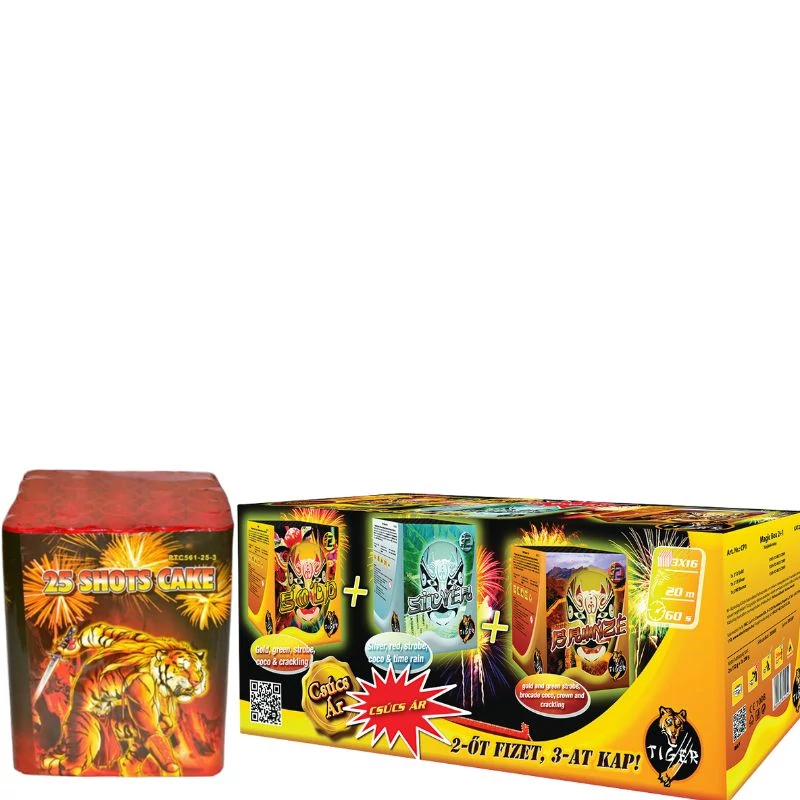 A Magic Boksz tűzijáték három darab, egyenként 16 lövéses telepet tartalmaz, így összesen 48 lenyügőző robbanást nyújt közel 60 másodpercnyi folyamatos működés során. Ehhez párosul a 16 lövéses külön telep. A vegyes színű rakéták nagy, látványos pálmaformákat bontanak 20-25 méteres magasságban, lecsüngő ágakkal és erőteljes hanghatással, amelyek garantáltan magukkal ragadják a közönséget. A gazdag színpaletta és a különböző effektek-pálmák, csillagok és egyéb fényjátékok-varázslatos, ünnepi hangulatot teremtenek bármilyen eseményen. a telepek könnyen kezelhetőek és biztonságosan használhatóak;, stabil talapzatuk biztosítja a megbízható, balesetmentes índítást. A Magic Box tökéletes választás mindazoknak, akik látványos és tartalmas tűzijáték élményre vágynak.