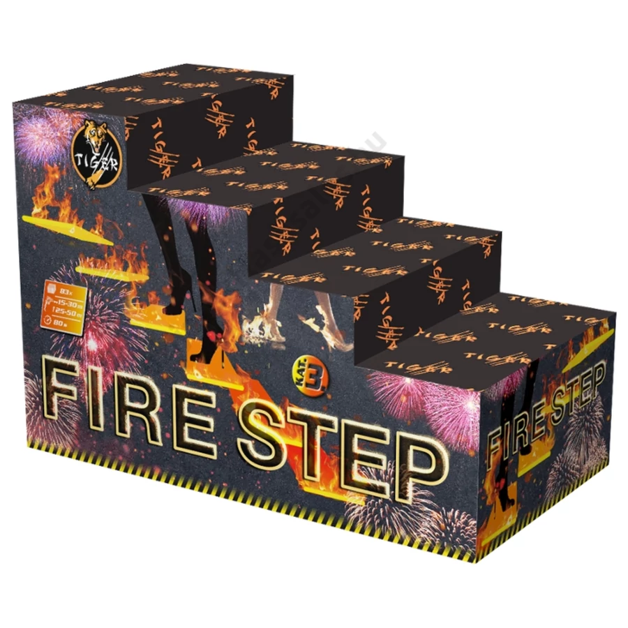A FIRE STEP egy látványos, lépcsőzetes tűzijáték telep, 83 lenyűgöző lövéssel és változó kaliberrel (20–48 mm). Erőteljes, intenzív show.A termék F3 kategóriába tartozik, ezért azt csak december 28 és 31 között lehet megvásárolni, kizárólag csak december 31-én 18 óra után lehet felhasználni.